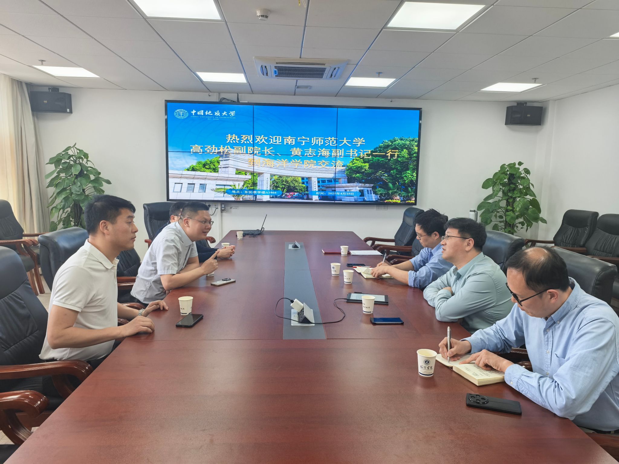 座谈交流中,高劲松介绍了南宁师范大学地理与海洋研究院的发展现状,表示希望双方进一步加强交流,共同推动双方在发展过程中的深度合作。我院孙军院长对南宁师范大学地理与海洋研究院的来访表示热烈欢迎,并介绍了中国地质大学(武汉)海洋学院的文化底蕴、发展现状以及未来规划。宫勋副院长介绍海洋学院学科发展与专业建设,详细介绍学院发展情况,分析展望海洋领域的广阔发展前景。随后,与会人员就科研合作等具体问题进行了深入交流,并表示期待进一步深化交流往来,共同推动双方高质量发展。