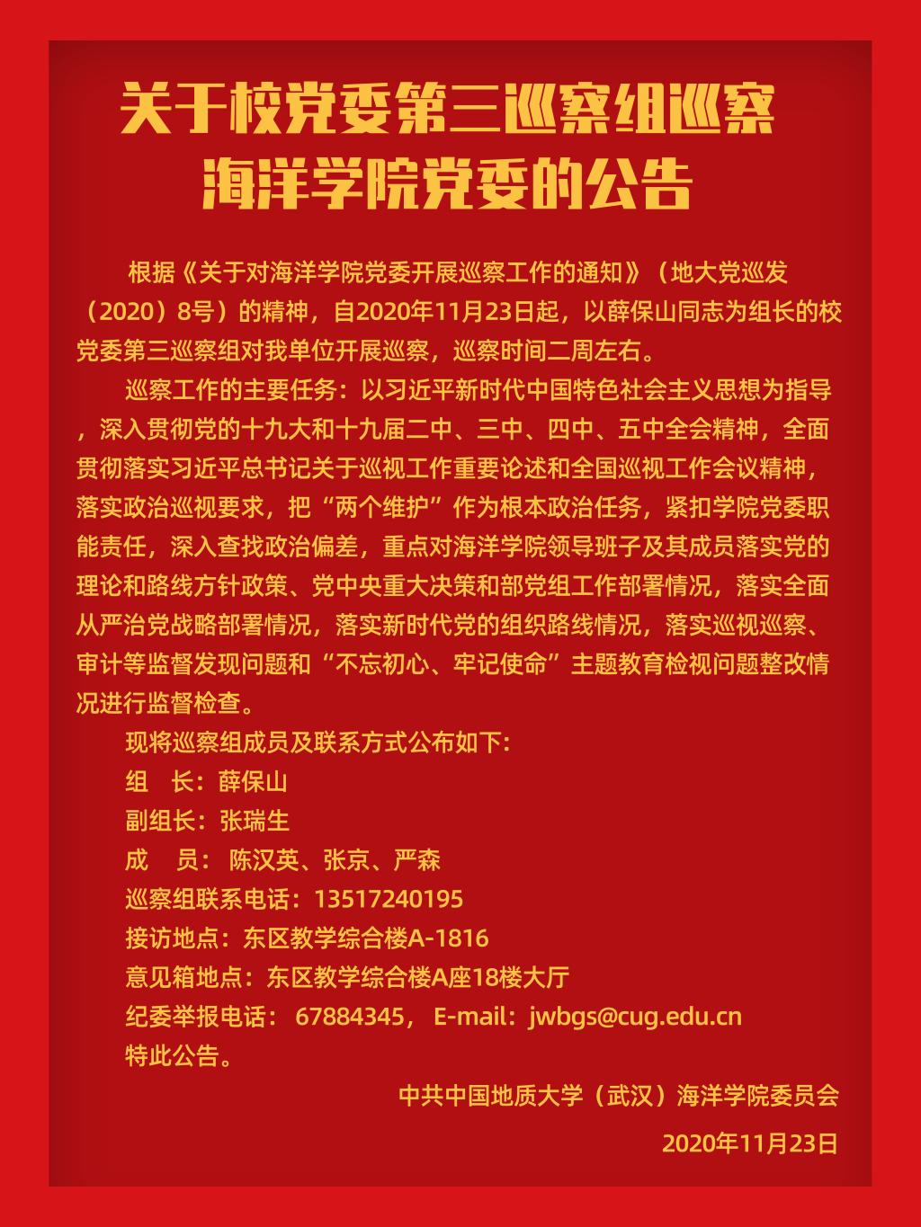 关于校党委第三巡察组巡察海洋学院党委的公告