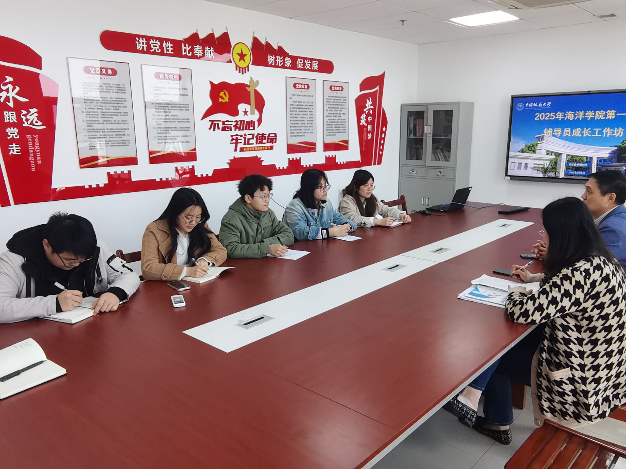 为提升辅导员队伍专业能力,助力学生工作高质量发展,2025年4月1日,海洋学院举办第一期辅导员成长工作坊。学院党委书记刘国华、党委副书记钟苹、团委书记陈波及全体兼职辅导员参会,会议围绕辅导员角色定位、能力提升及工作机制和工作方法创新等主题展开深入交流。