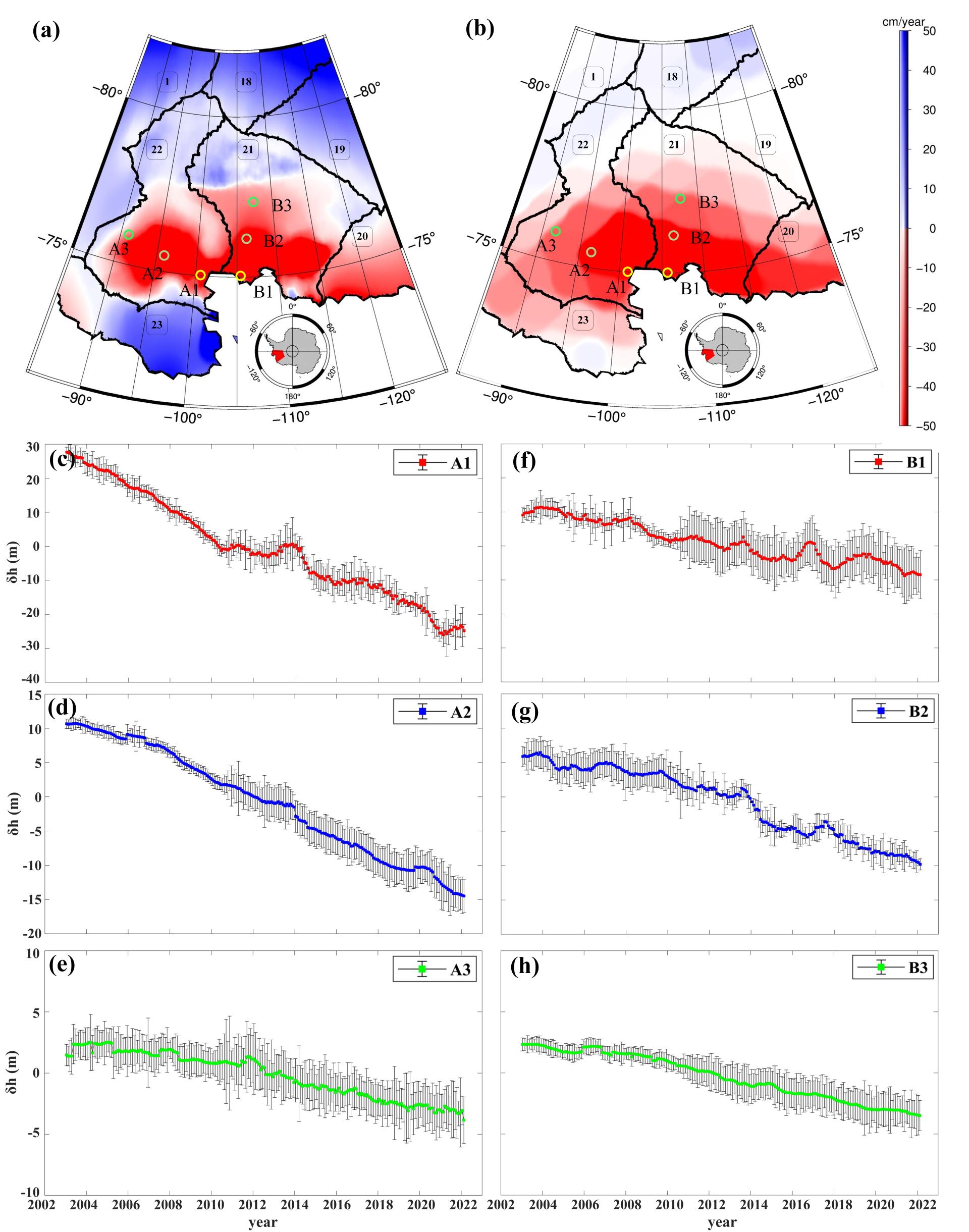 1 2003-2021年间阿蒙森海冰流域冰盖表面高程变化时间序列