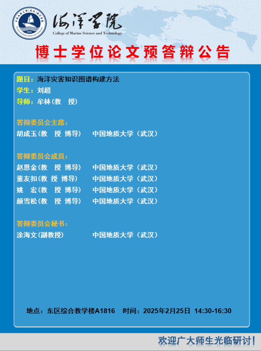 海洋学院2025年春博士学位论文预答辩公告(2月25日)