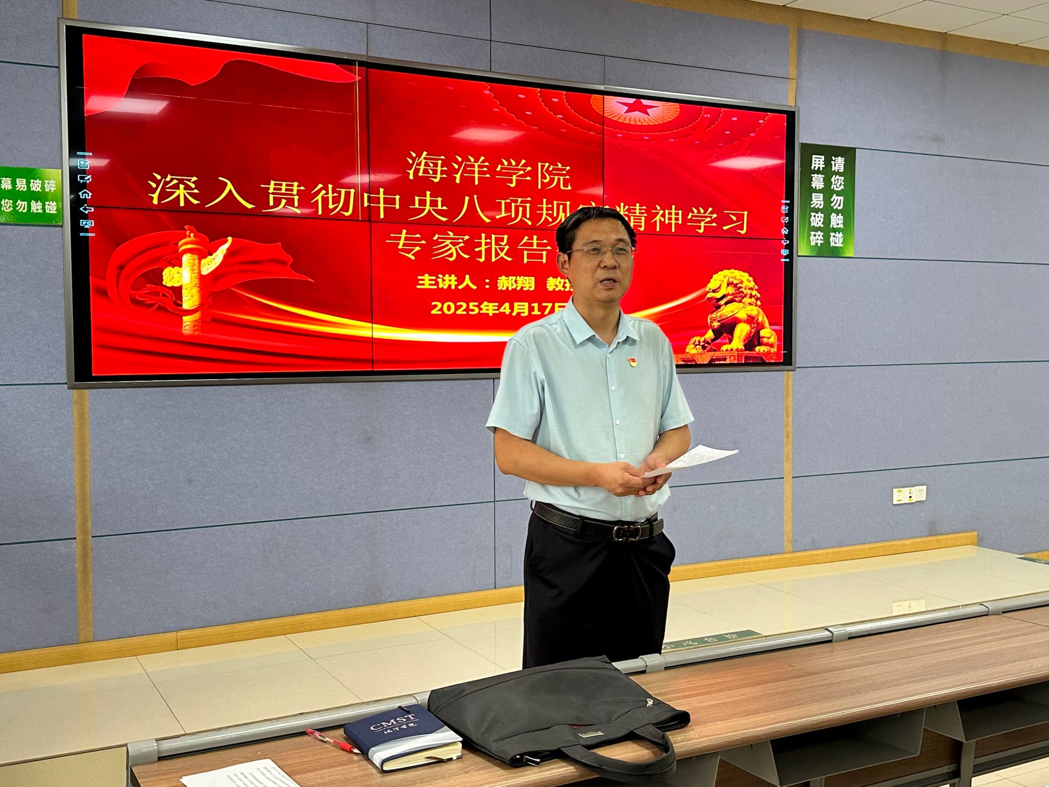 郝翔教授从五个维度向师生深刻讲授了作风建设的根本性、重要性、严肃性、长期性、自觉性。他认为,作风问题本质上是党性问题,党的作风建设是党群关系的“晴雨表”,必须从党性要求的高度认识作风建设的根本性;要坚持以习近平新时代中国特色社会主义思想为指导,持续深化党的创新理论武装,认真学习领会习近平总书记关于加强党的作风建设的重要论述,这是我们深入贯彻中央八项规定精神学习教育的科学指引和根本遵循;学习教育是我们永葆政治本色、筑牢思想防线的有效途径,每一名党员都不能做局外人,特别是党员干部,更应怀以饱满的热情、诚恳的态度投入其中,学查改贯通、知信行统一,不断提高作风建设的自觉性。