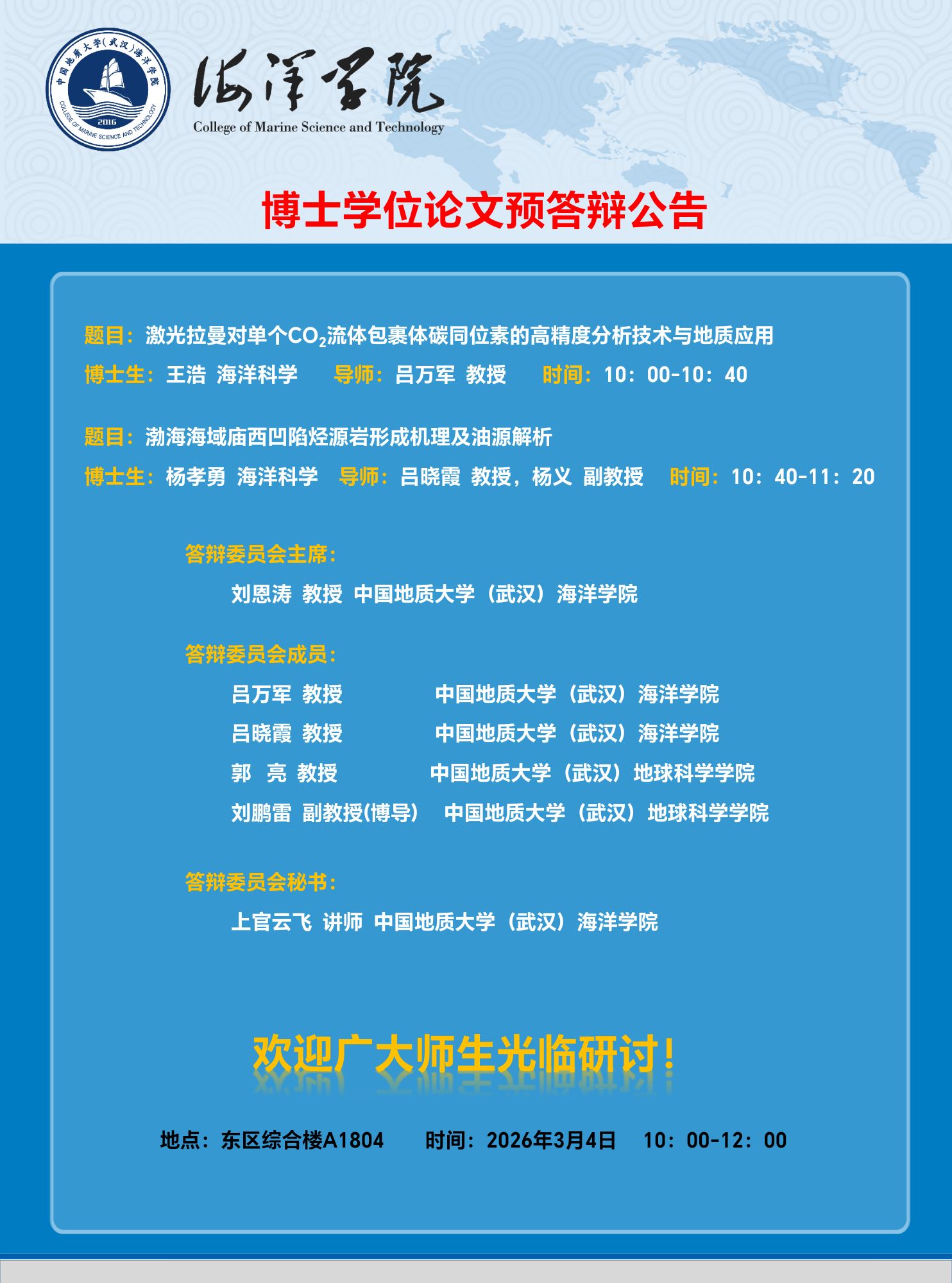 51风流 2026年春博士学位论文预答辩公告(汤智逸等3月6日)
