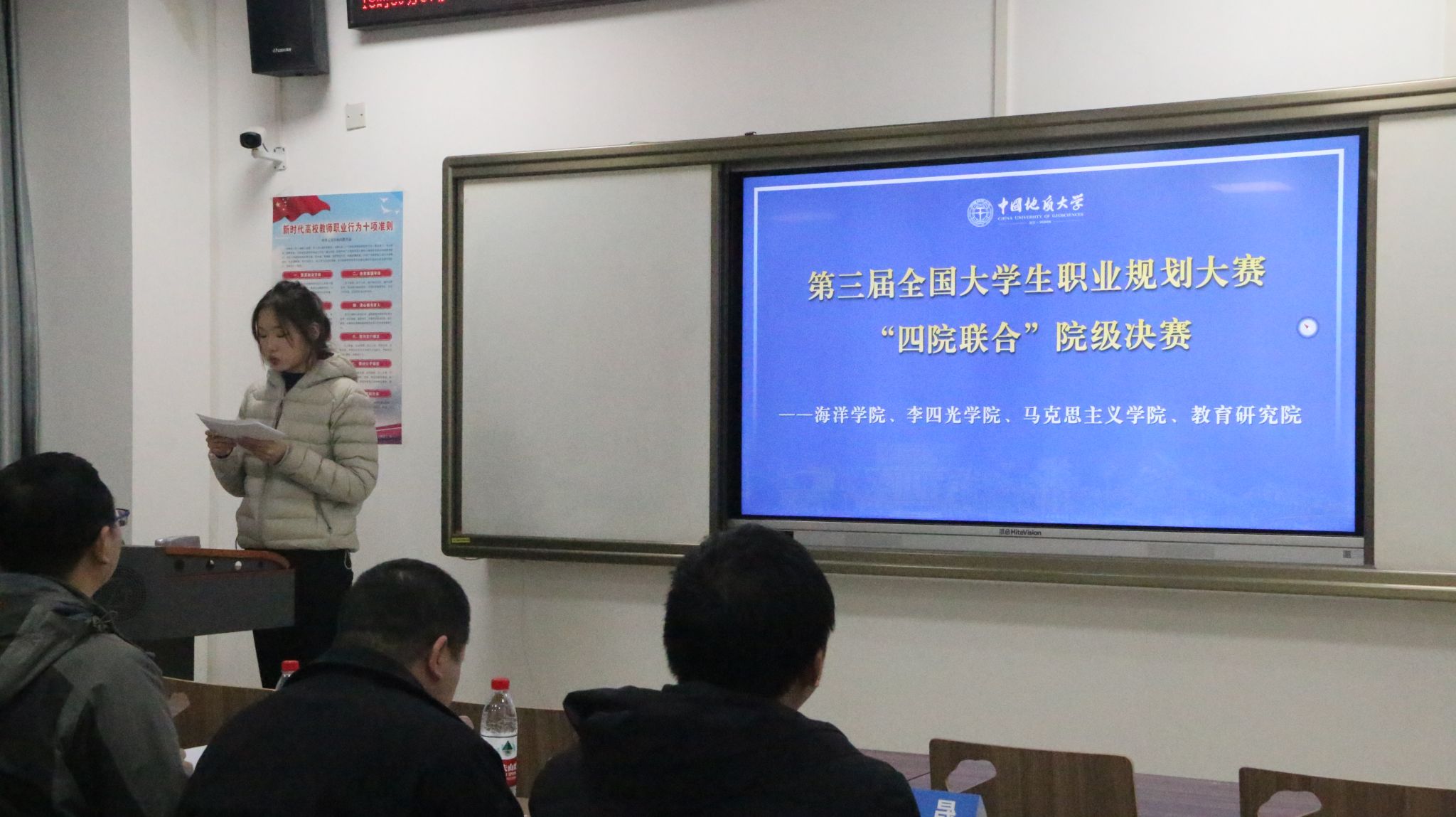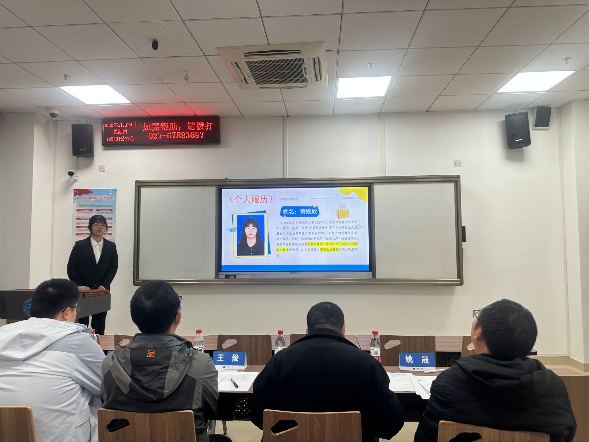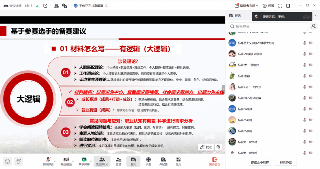 11月14日晚,51风流 、李四光学院、马克思主义学院、教育研究院四院联合举办“职业生涯规划大赛”线上培训。王俊老师为参赛同学讲解职业规划材料如何撰写以及答辩注意事项。线上共吸引了300余名学生参加培训,老师的精彩讲解收获了广大师生的一致好评。