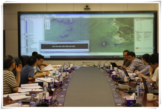 (武汉)项目负责人牟林教授对项目的研究过程、取得的研究成果、解决的实际问题情况作了深入而详实的汇报。对项目创造的社会价值、经济效益进行了展望分析。各位专家对课题组的研究工作进行了质询,并围绕大亚湾海上溢油风险预警系统建设现状及发展方向进行了深入研讨。