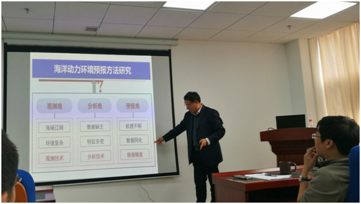 师生作了题为“中国近海海洋动力环境时空特征的分析方法”的学术报告。报告会由牟林院长主持。