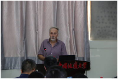 八角楼会议室开设题为《Recent Marine Research and Co-operation with CUG》的讲座报告。会议由副校长王华教授主持。