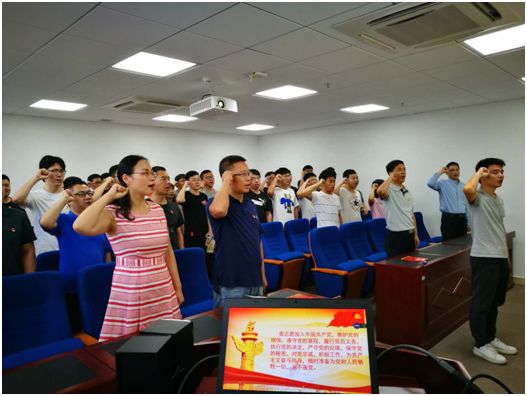图2 全体党员集中宣誓,重温入党誓词