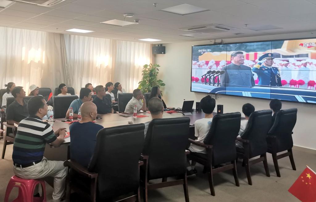 9点30分,在阅兵正式开始之前,学院老师和同学们就提前到达会议室,观看阅兵式之前的准备纪录片。10时,随着悠扬的庆典声响起,阅兵仪式正式开始。首先由中共中央总书记、国家主席、中央军委主席习近平发表重要讲话,随后举行了盛大的阅兵和群众游行。
