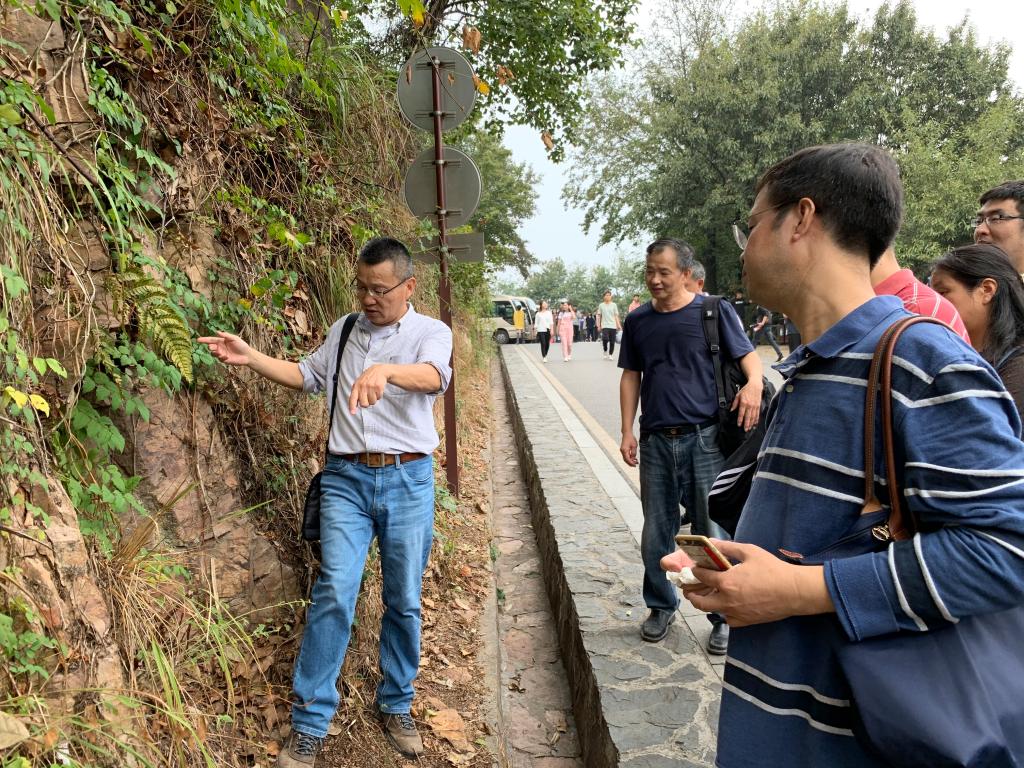 在登山过程中,老师们还发挥专业特长,对岳麓山的地质现象进行了现场分析和讨论。