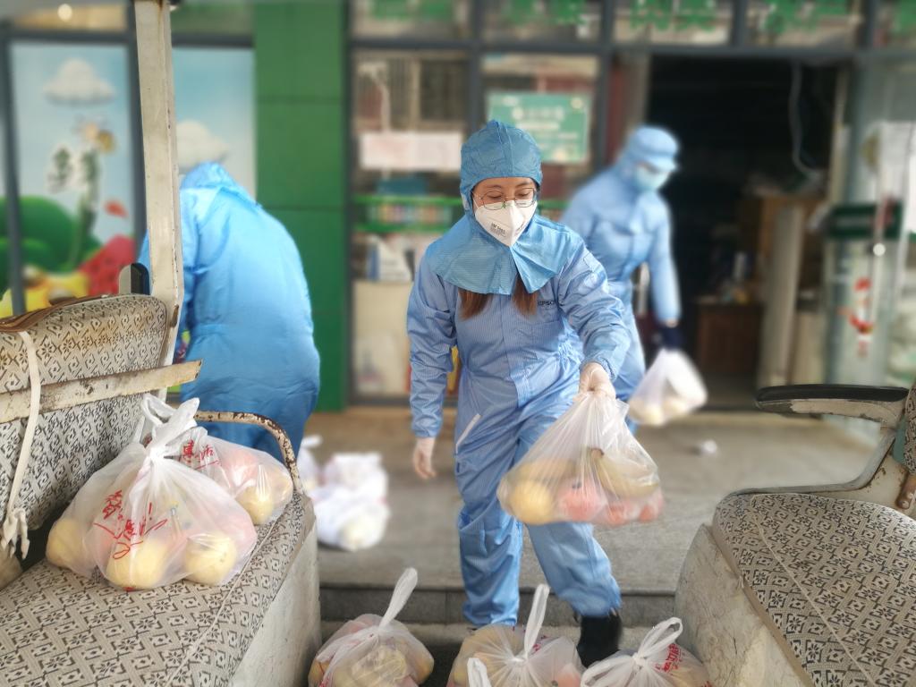2018级研究生党支部为留校学生捐款筹资购买的爱心水果分发给了因疫情防控滞留学校的58 名学生。