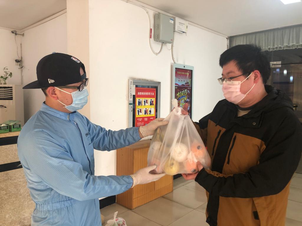 学工组老师的协助下,支部成员们委托留校学生党员马晓晨与学校后勤部门取得联系,定向购买了58份水果并分发给了留校学生。