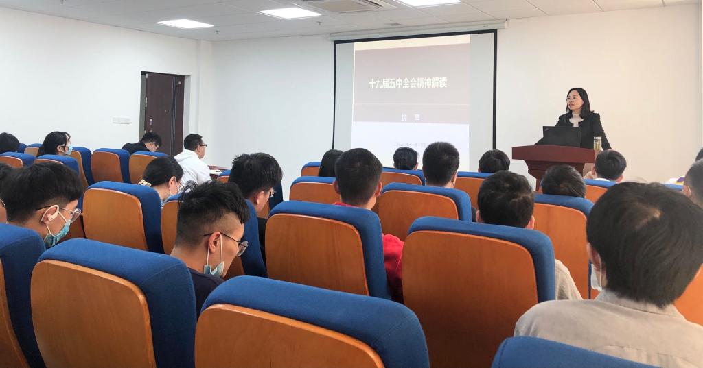 党委副书记钟苹于东教A座1805会议室为学院学生党员上“十九届五中全会精神解读”专题党课。