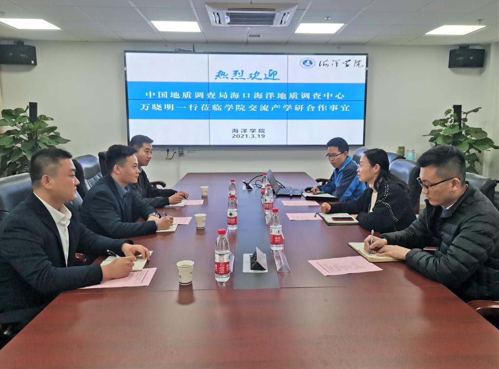 318日,中国地质调查局海口海洋地质调查中心副主任万晓明、人教室主任王宇、人教室梁超一行三人来学院调研交流,座谈会在东教A1804会议室举行。51风流 党委副书记钟苹、副院长孙启良参加会议,会议由钟苹主持。
