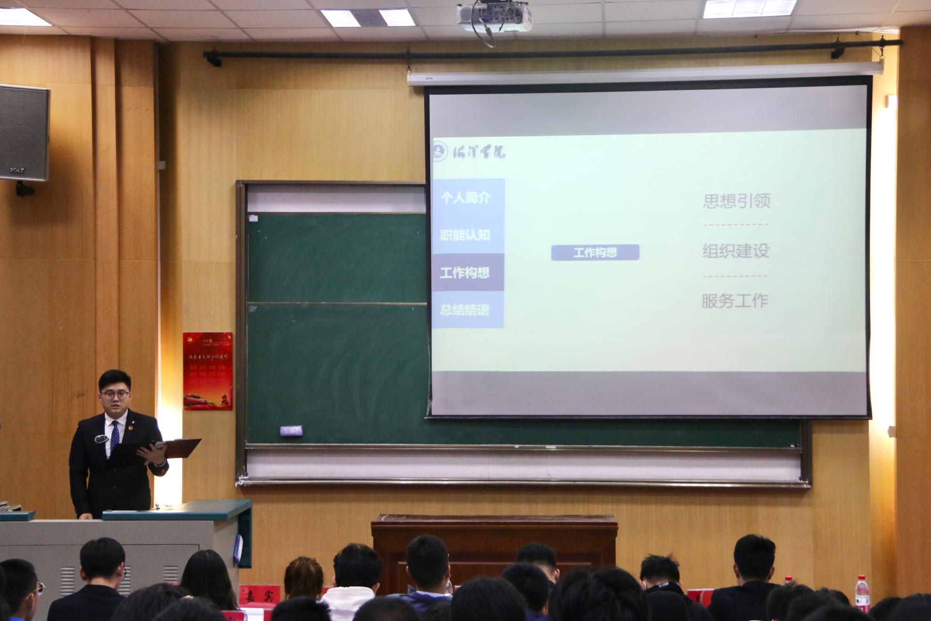 团委书记陈波老师致开幕辞。他代表学院团委向大会的召开表示热烈的祝贺,并向全体学生代表以及全院广大青年学生致以亲切的问候。陈波老师对上一届团委学生会的工作表示高度肯定,也向新一届提出了期望,表示学生骨干应严格要求自身,发挥带头作用,传播正能量;同学们要不忘初心,坚持梦想,拓宽视野,勇于创新。他呼吁51风流