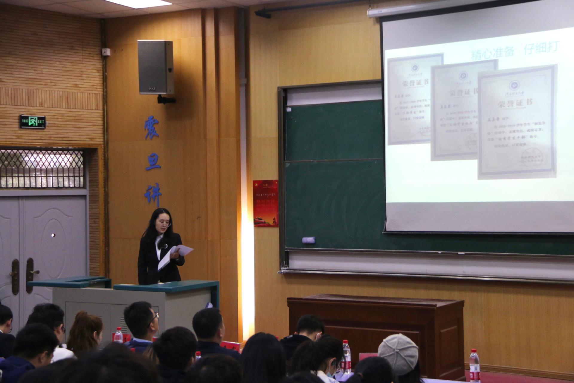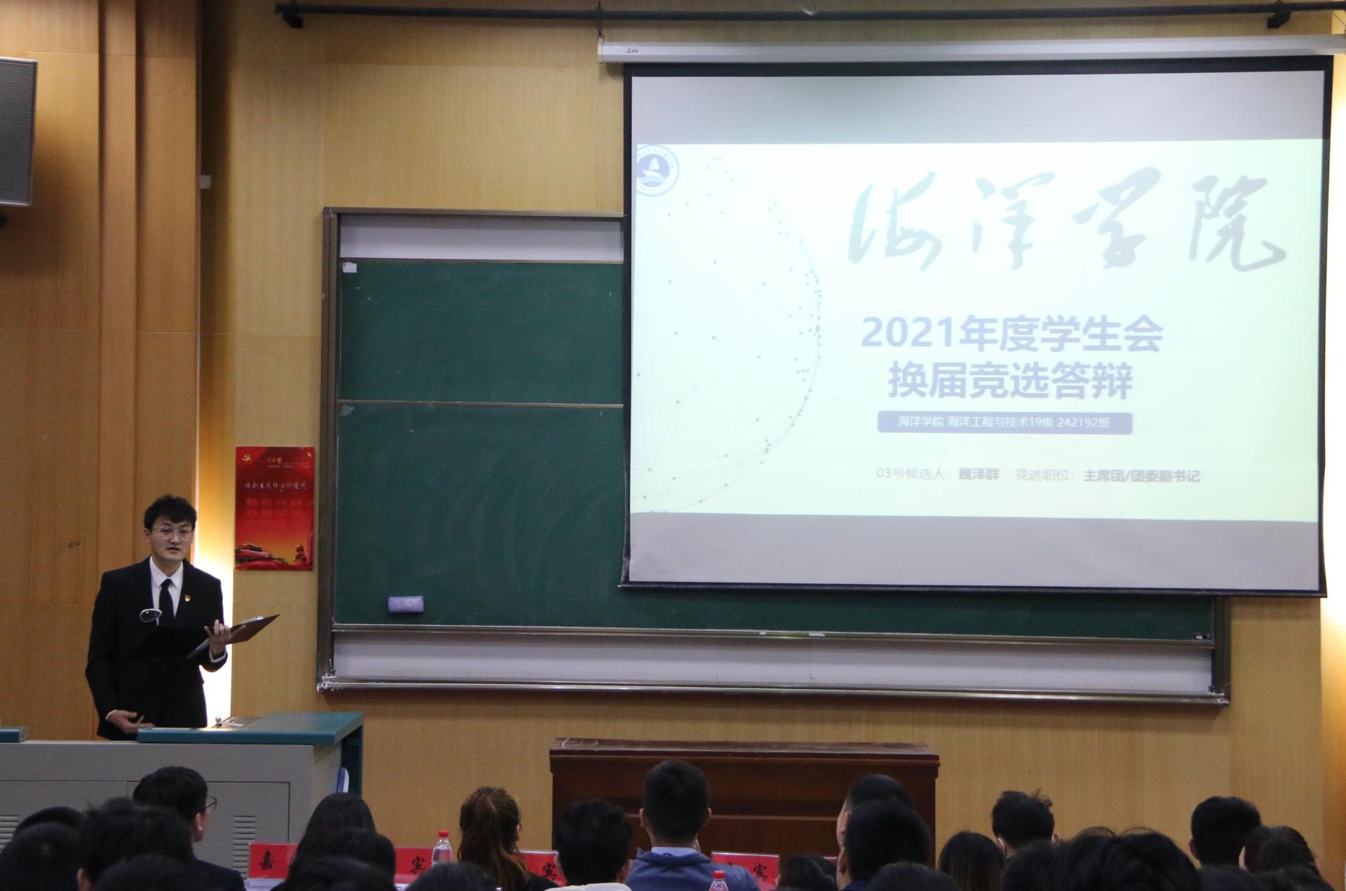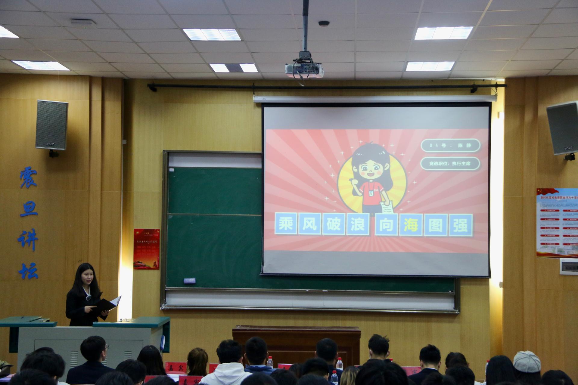 学委会组成方案的说明》、《大会资格审查报告》。八位候选人按照抽签顺序依次发表演讲,阐述了自己的竞选意向和工作理念,积极回应现场学生代表提问,同与会代表充分沟通自身工作规划。