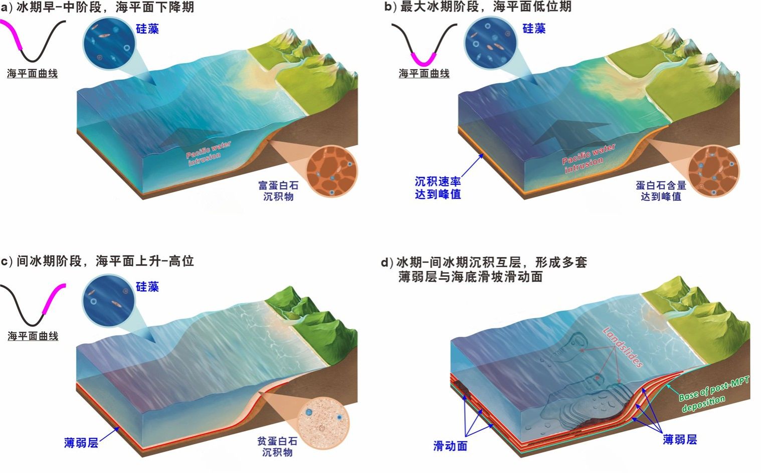 1 南海北部陆缘中更新世气候转型以来海底薄弱层沉积模式图