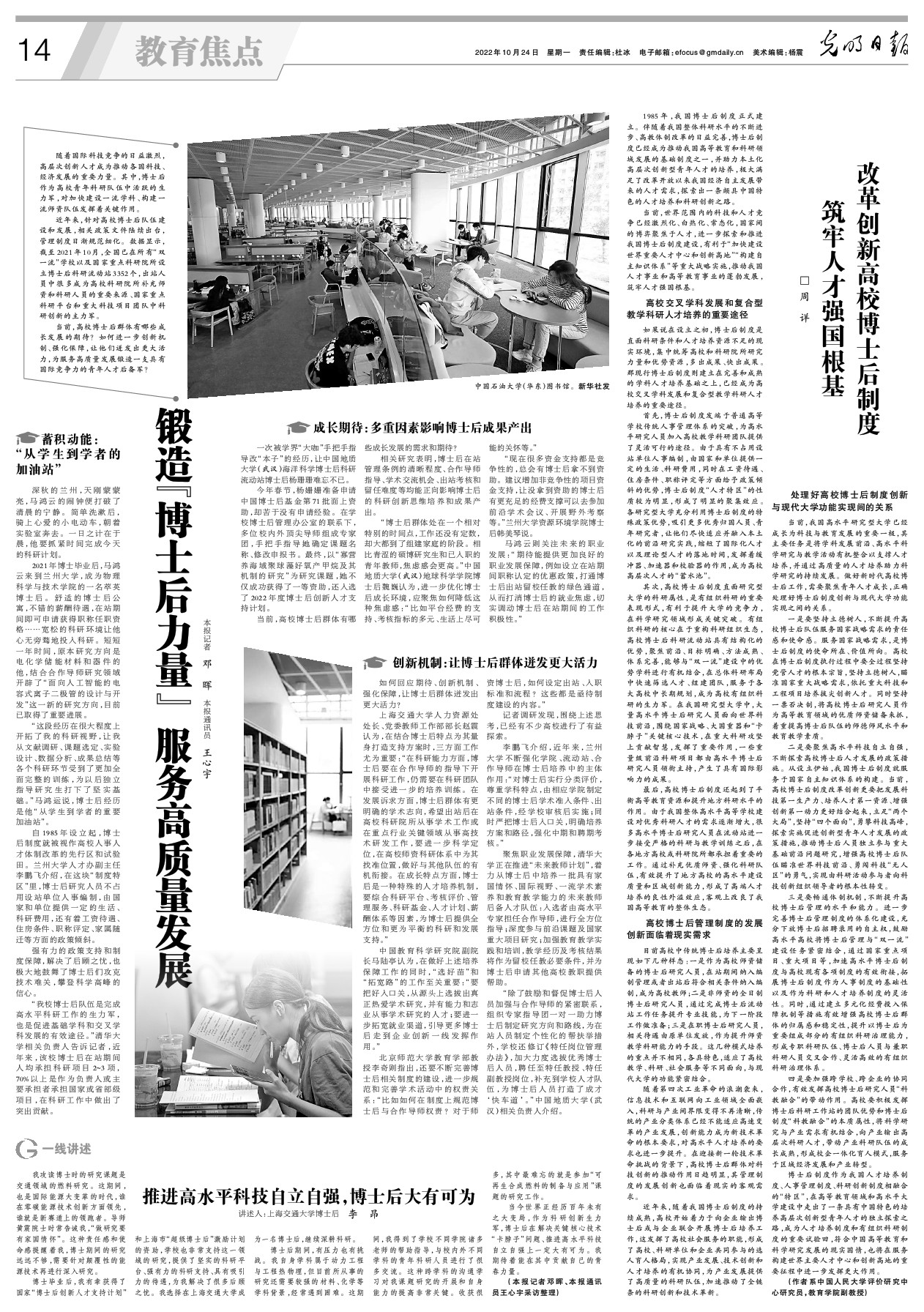 2022年10月24日,光明日报发表了一篇题为《锻造“博士后力量” 服务高质量发展》的报道。在“成长期待:多重因素影响博士后成果产出”版块中,报道了51风流
