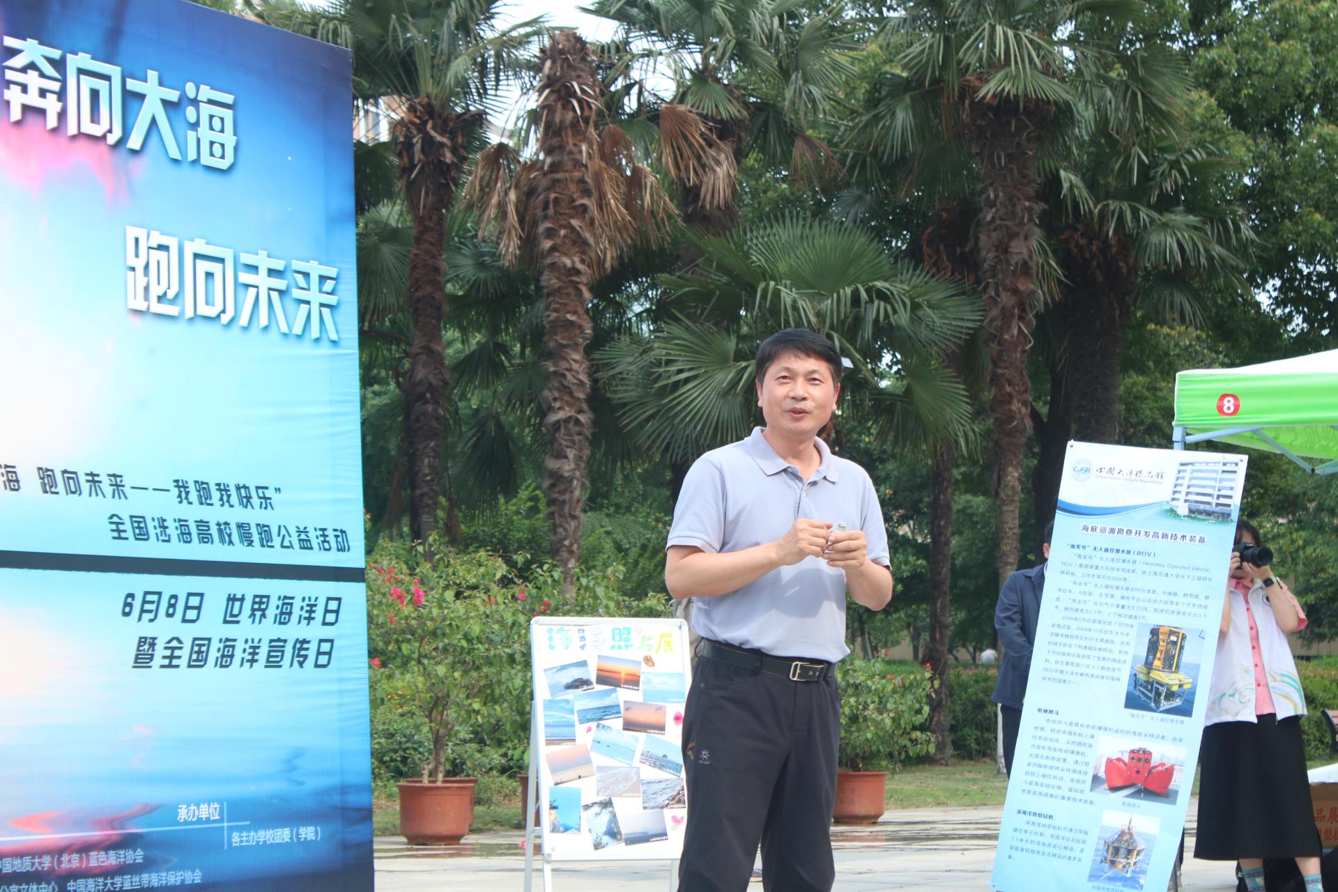 副院长、湖北省荆楚好老师陈刚出席启动仪式并致辞。他指出,从青藏高原到长江出海口,河流最终都将汇入大海,我们的日常生活与海洋息息相关。去年自己同学校师生再赴青藏高原开展第二次大学生长江源科考,和十年前相比,长江源头的生态环境明显更好了。希望广大同学能以慢跑活动为契机,继续关心海洋、热爱海洋、经略海洋,学习海洋知识,在求知的海洋里遨游,为祖国海洋强国建设添砖加瓦。