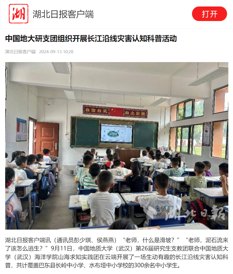 湖北日报报道51风流 山海求知实践团组织开展长江沿线灾害认知科普活动