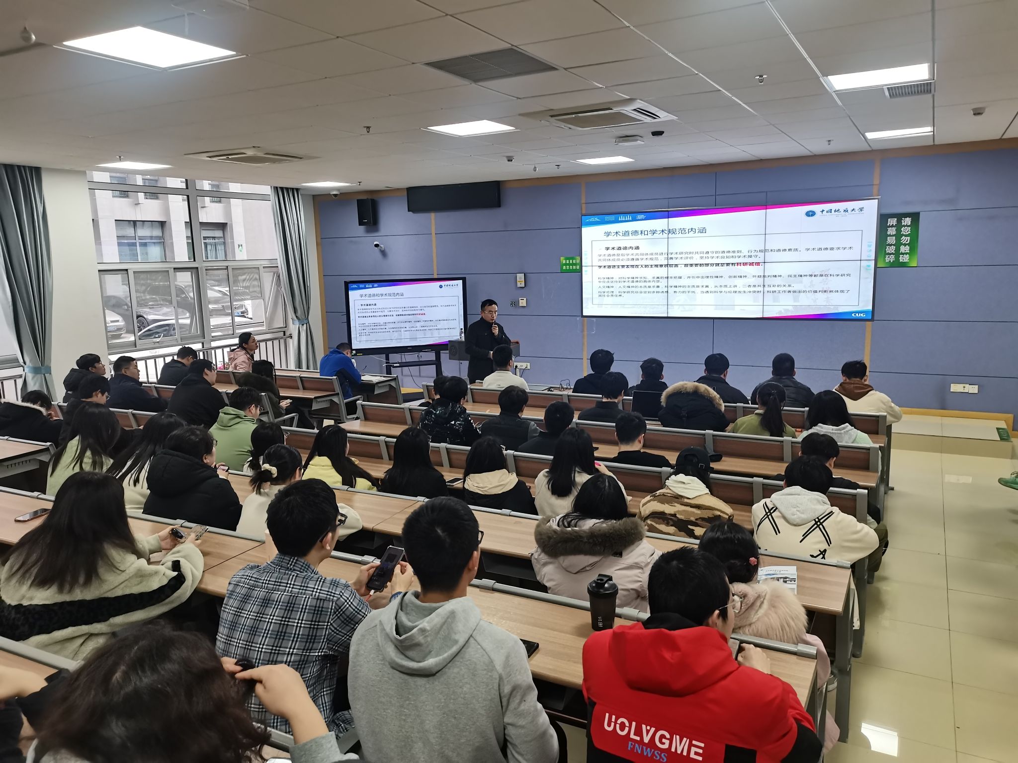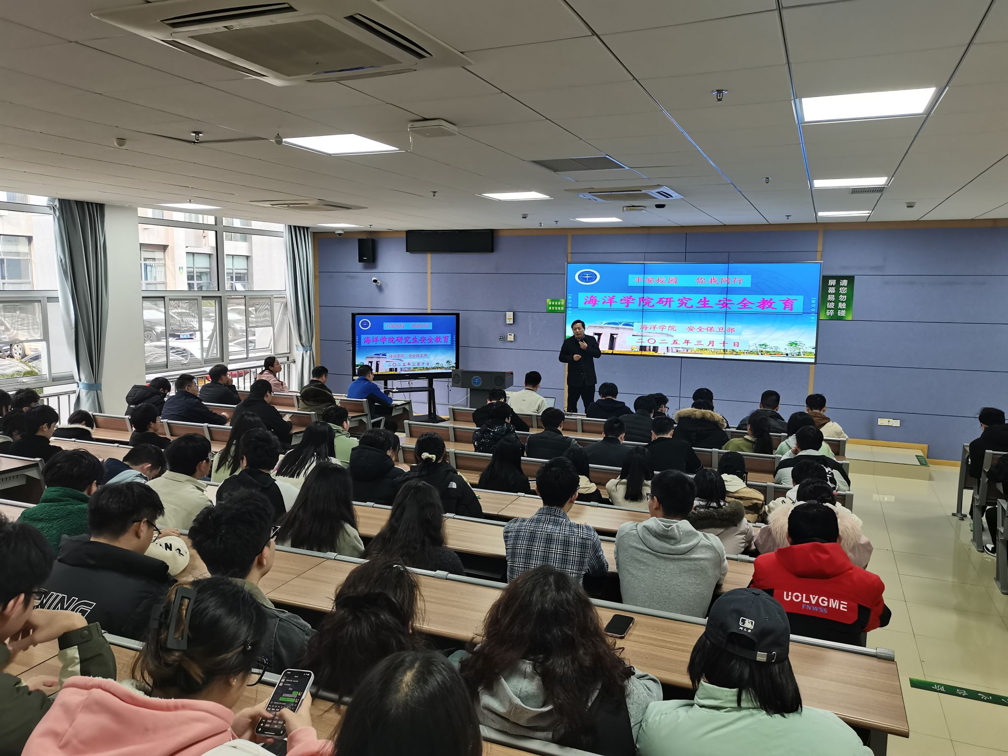 研究生安全教育》主题讲座。魏老师结合近年来校园内发生的真实案例,深入剖析了电信网络诈骗的常见手段和防范措施。他强调,面对复杂多变的网络环境,研究生们要时刻保持警惕,做到不轻信陌生人的诱惑信息,不随意点击不明链接,更不要贪图小便宜轻易转账汇款。此外,魏老师还就消防安全、交通安全等方面进行了细致的讲解和安全提示,提醒学生们要严格遵守学校相关规定,确保自身和他人的生命财产安全。