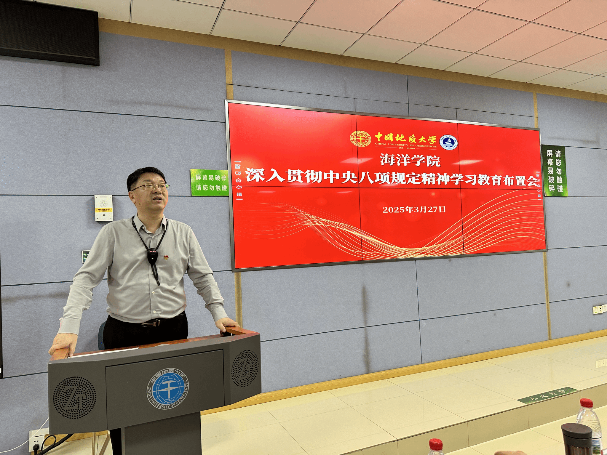 学院党委书记刘国华对学院学习教育做动员部署。一是提高政治站位,深刻认识学习教育的重大意义。要引导广大党员干部进一步增强纪律意识、规矩意识,始终保持党的先进性和纯洁性;要切实解决师生反映强烈的突出问题,不断提高师生的获得感、幸福感和安全感。二是聚焦关键环节,推动走深走实。要深入学习领会精神,引导党员干部学深悟透,入脑入心;要全面深入查摆存在的问题、找准问题症结、建立问题清单;要长期坚持抓好整改落实,制定切实可行的整改措施、明确整改责任和时限、建立健全长效机制,做到经常抓、见常态,深入抓、见实招,持久抓、见长效。三是强化责任担当,确保有序推进。要压实工作责任,学院成立了领导小组,学院党委切实担负起主体责任、班子成员落实好“一岗双责”、党支部书记履行好岗位职责,确保学习教育全覆盖;要加强督促检查,成立专门督查组,对走过场、搞形式的严肃问责;要营造良好氛围,充分利用学院官网、海洋HiYoung微信公众号、宣传栏等宣传阵地广泛宣传,加强舆论引导。学院将通过此次学习教育,以更严的要求、更实的举措、更优的成效,真正让规矩立起来、作风严起来、效率提起来,为培养出更多符合新时代发展需要的海洋人才交出合格答卷。