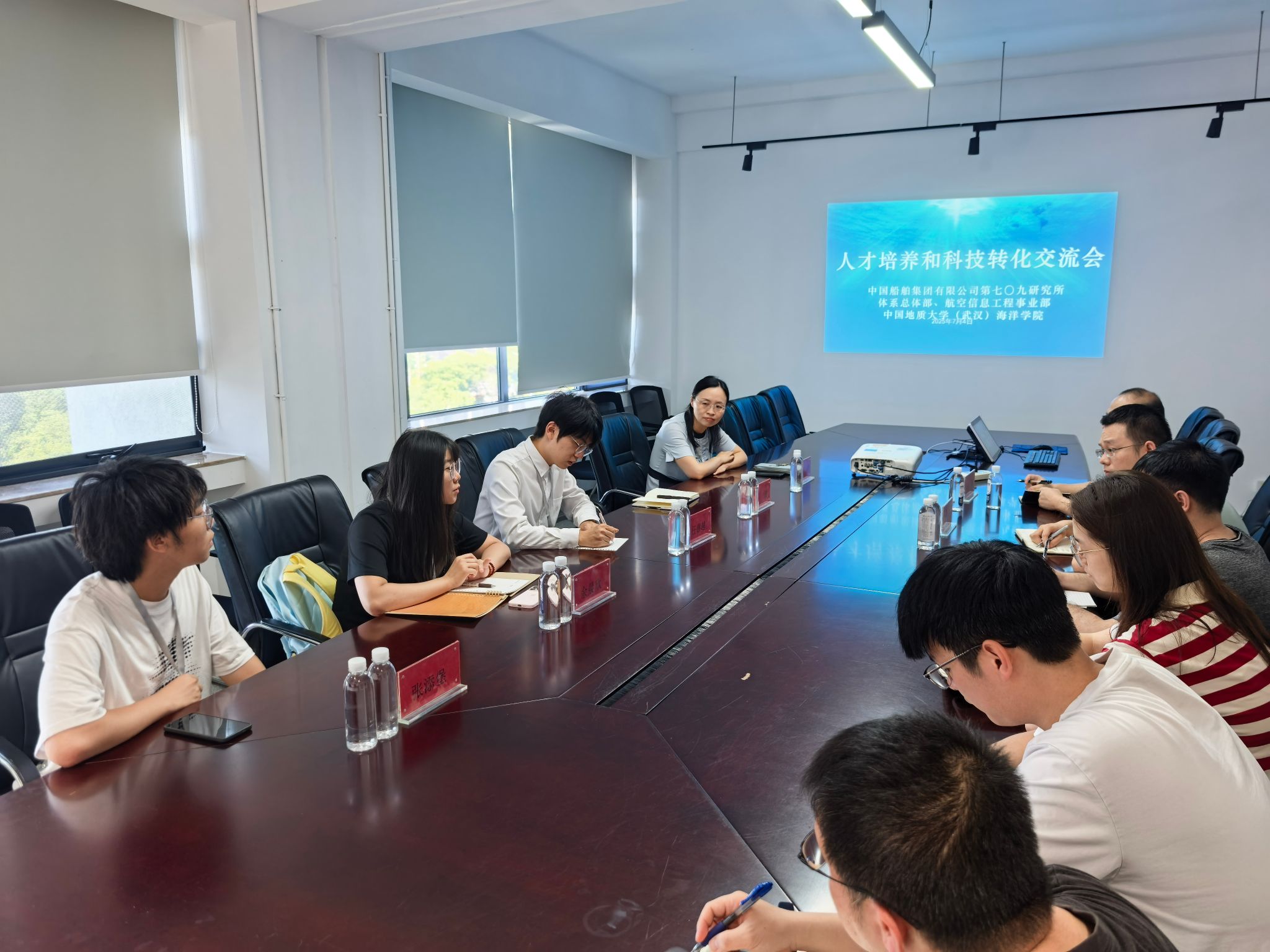党委副书记钟苹一行前往中国船舶集团有限公司第七〇九研究所访企拓岗。七〇九研究所相关部门负责人李立夏、周自立等参与座谈交流。团委书记陈波和部分学生代表随行。