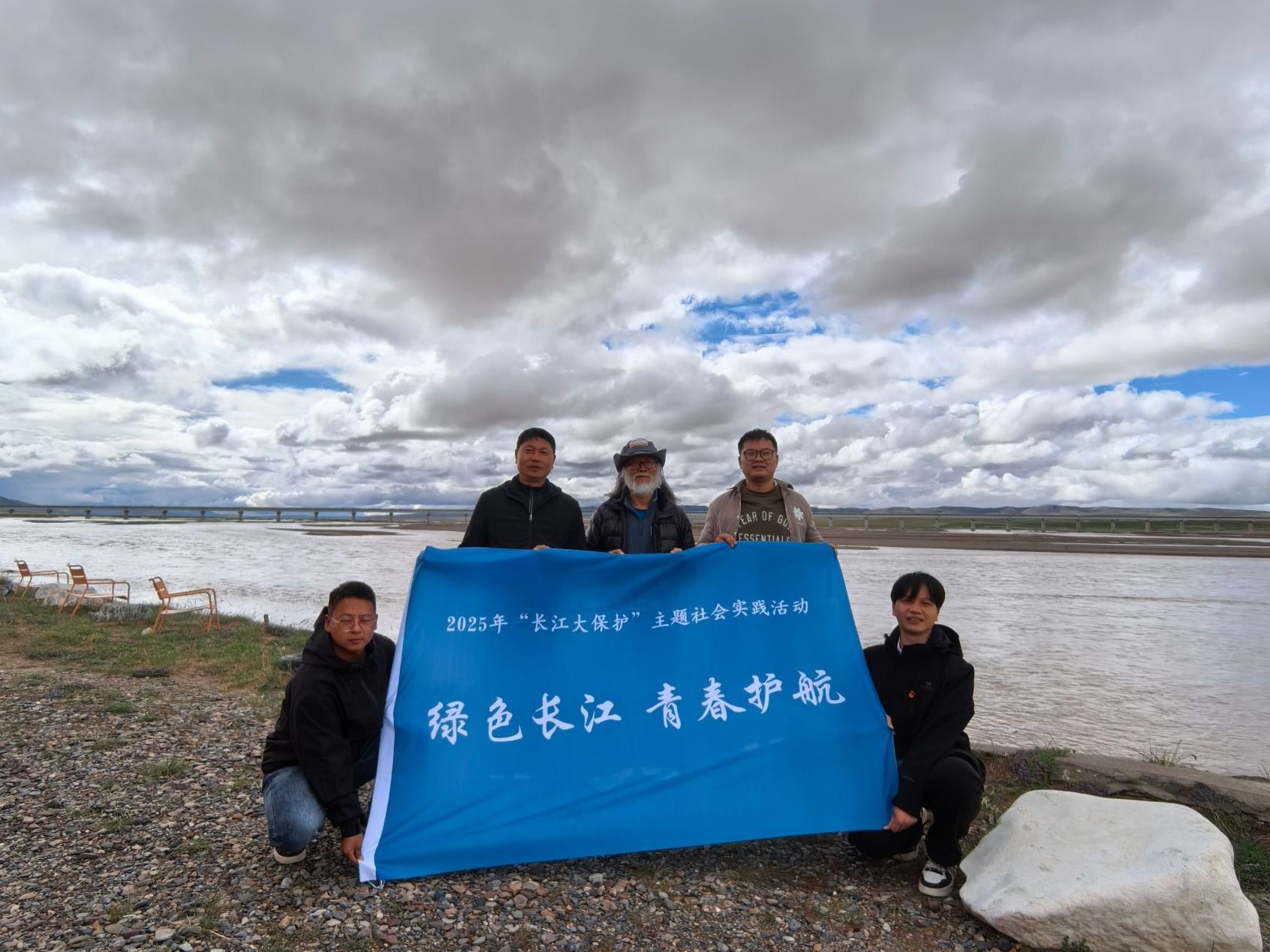 当日中午,团队走访沱沱河水文站,与扎根高原的年轻工作者交流。水文站站长分享了极端天气下监测水位、守护源头的日常,其“把青春安放在祖国最需要的地方”的信念令队员动容。随后,团队在水文设施周边开展补充观测,并前往气象站深化学习。实践期间,团队偶遇“长江漂流第一人”杨欣。这位用毕生守护源头的先驱,通过惊险历程与环保实践分享,让队员深刻理解“坚守”二字的分量。“杨欣老师的故事让我们明白,保护长江不仅是科研任务,更是精神传承。”陈刚教授说。