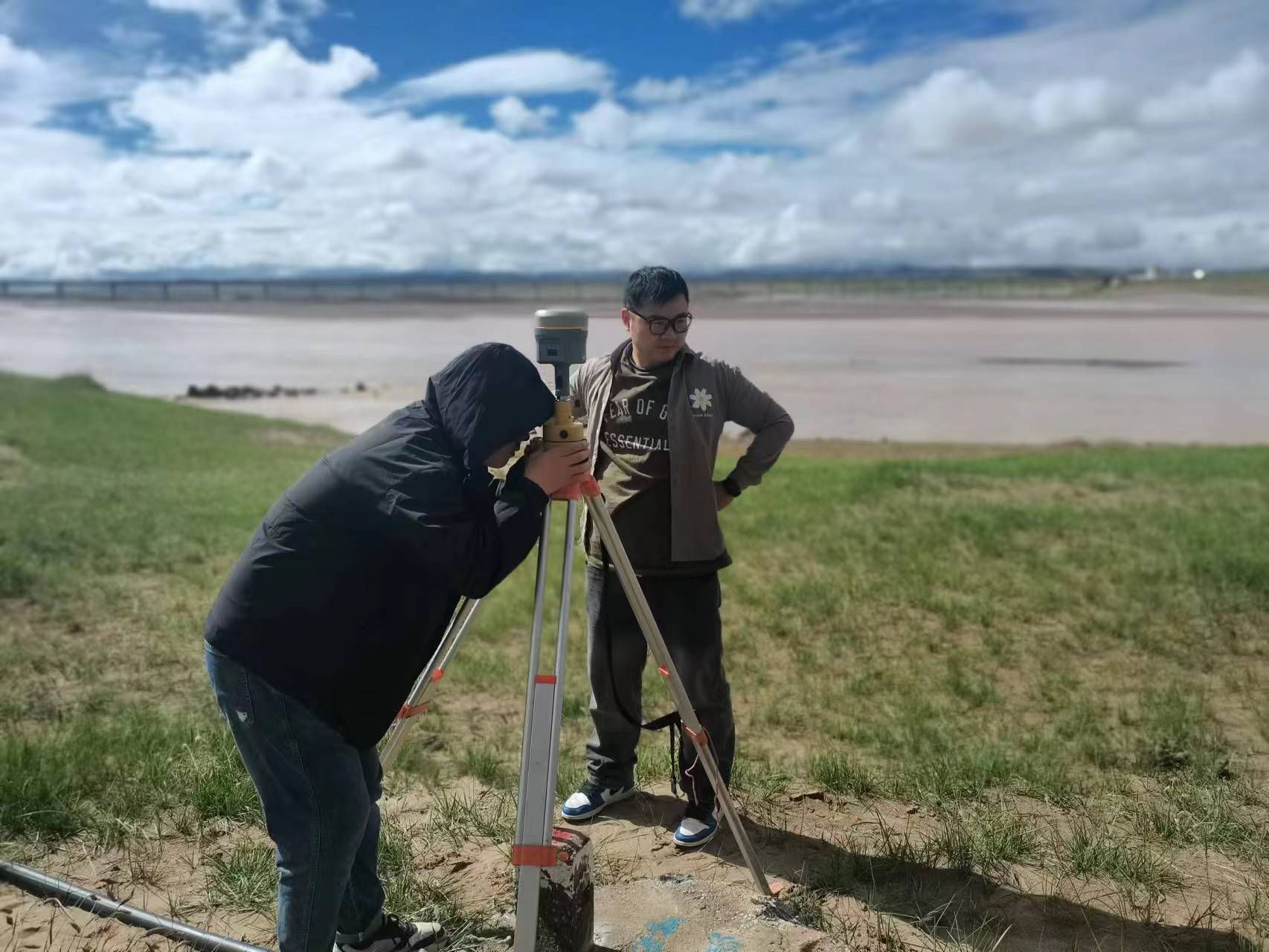 7月22日,团队从武汉、郑州、西安等地集结,在指导老师陈刚教授带领下奔赴青藏高原。经过西宁至格尔木的适应性休整,7月25日凌晨,队员们携带设备深入可可西里无人区,在沱沱河畔布设3处GNSS长时静态观测点,开展连续5小时毫米级精度数据采集。“在缺氧环境下保持操作稳定,是对意志和专业的双重考验。”队员2024级博士研究生刘正表示。