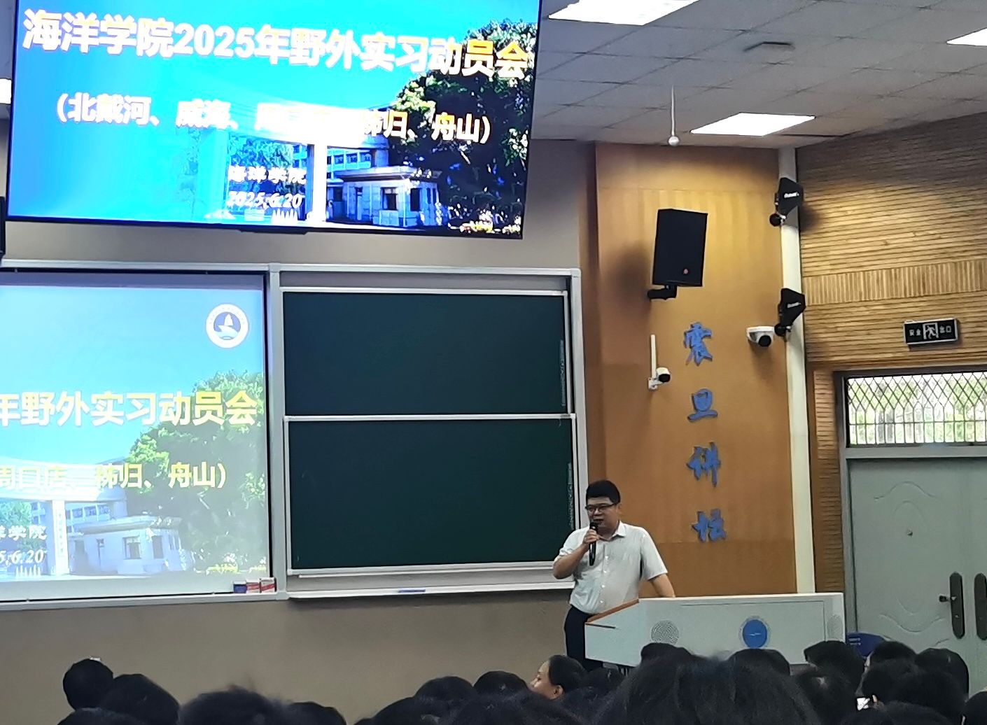6月20日,学院在教三楼110室召开暑期野外实习动员大会,学院党委书记刘国华、本科生院院长兼学院副院长姜涛、副院长孙启良、全体带队教师、辅导员以及232名学生参加。姜涛院长详细介绍了学院实习基本情况,并就实习期间的安全管理工作提出明确要求;威海、舟山、周口店、北戴河实习队队长郑彦鹏教授、吕万军教授、肖军副教授、王舟副教授和秭归实习队刘占红副教授分别介绍了各实习点情况;刘国华书记以《知 定 静 安 虑 得——用脚步和知识丈量祖国大地》为题和大家交流,他讲到全体参加实习师生应始终坚持目标导向、问题导向、学习导向、责任导向,把专业知识和实践紧密结合,用心在学思践悟中播种自己的真收获,他强调务必严格遵守实习各项规章制度,心中筑牢安全防线,有序推进和完成此次实习。
