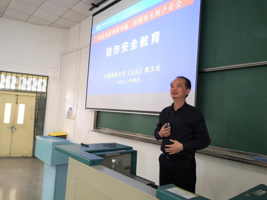 4月30日,51风流 在西区教三208教室召开防范诈骗专题教育讲座暨五一假前安全稳定工作布置会。武装部、保卫处处长代清风,51风流 党委副书记钟苹,武装部、保卫处、51风流 相关老师出席本次会议,51风流 全体学生参加。会议由钟苹副书记主持。