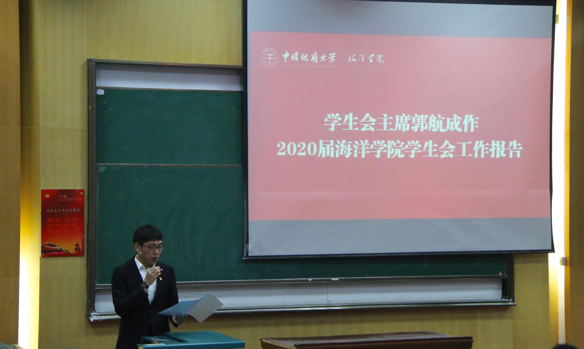 学生会执行主席郭航成向大会作题为《学习新思想,奋发新作为,改革再出发》的工作报告。报告从“着力思想引领,建设奋进海洋”、“弘扬严谨学风,搭建智慧海洋”、“立足青年成长,凸显活力海洋”、“展现学科特色,彰显卓越海洋”四个方面系统地回顾了第四次学生代表大会以来学生会的工作情况。报告指出2020-2021学年是51风流 继续实施并完善《团学机构改革方案》的一年,51风流 学生会积极响应共青团改革再出发的号角,对现有团学组织框架进行改革调整,较圆满的完成了本年度的各项工作。