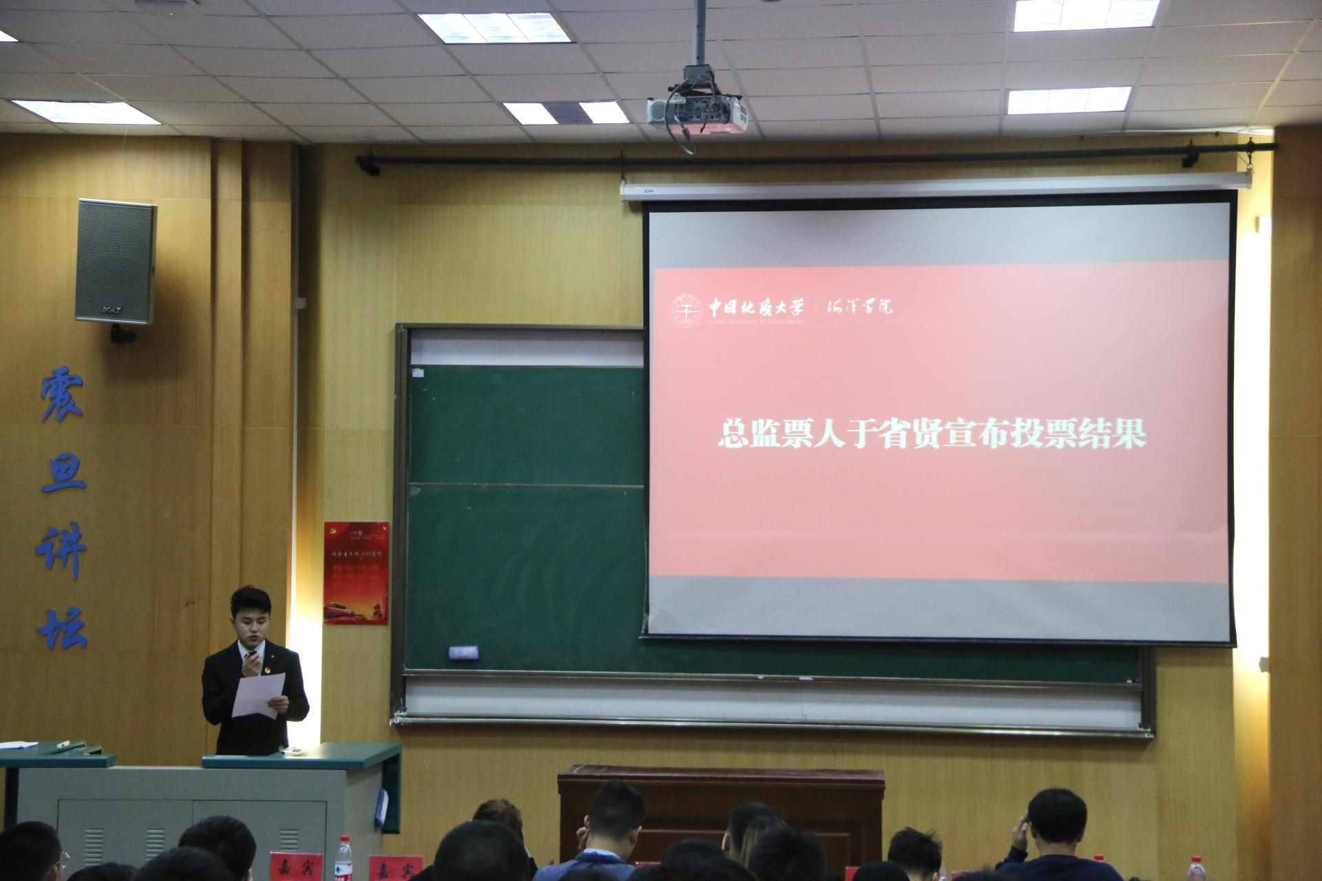 与会学生代表填写选票并投票。全体与会人员投票选举出51风流 第五届学生委员会常务委员10名,以及51风流 学生会主席团成员5名,团委副书记1名。由总监票人于省贤向全体与会代表公布选票的计票情况。