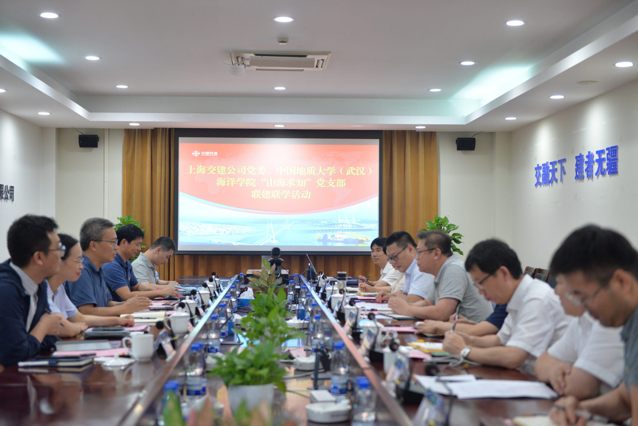 孙鹏对海洋学院成军书记一行的到来表示欢迎。孙鹏介绍了上海交建的发展历史、业务范围等基本情况。他表示上海交建历来重视校企合作,公司与中国地质大学合作基础良好,希望此次深化合作能够取得更大成果。