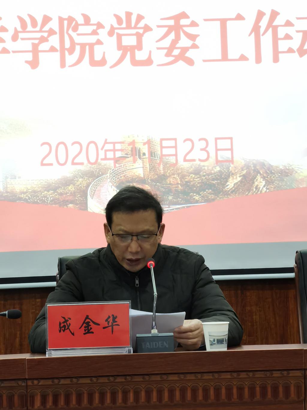 2020年11月23日,中国地质大学(武汉)党委巡察海洋学院党委工作动员会在南望山校区东区教学综合楼A-708会议室召开。学校党委副书记成金华出席会议,学校党委第三巡察组组长薛保山、副组长张瑞生和成员陈汉英、张京、严森,学院全体教职工、学生代表等五十余人参加会议。副院长姜涛主持会议。