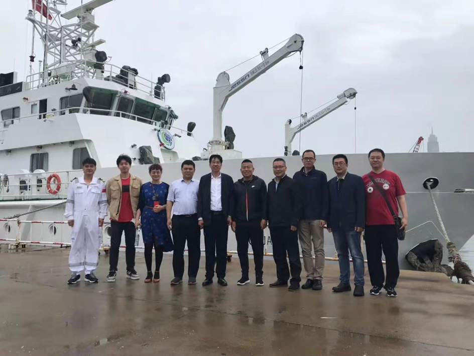 在郭秀银书记的陪同下,成军书记一行参观了海岸带研究所“创新一号”科考船,详细了解了科考船的运行和科研设备配置情况。