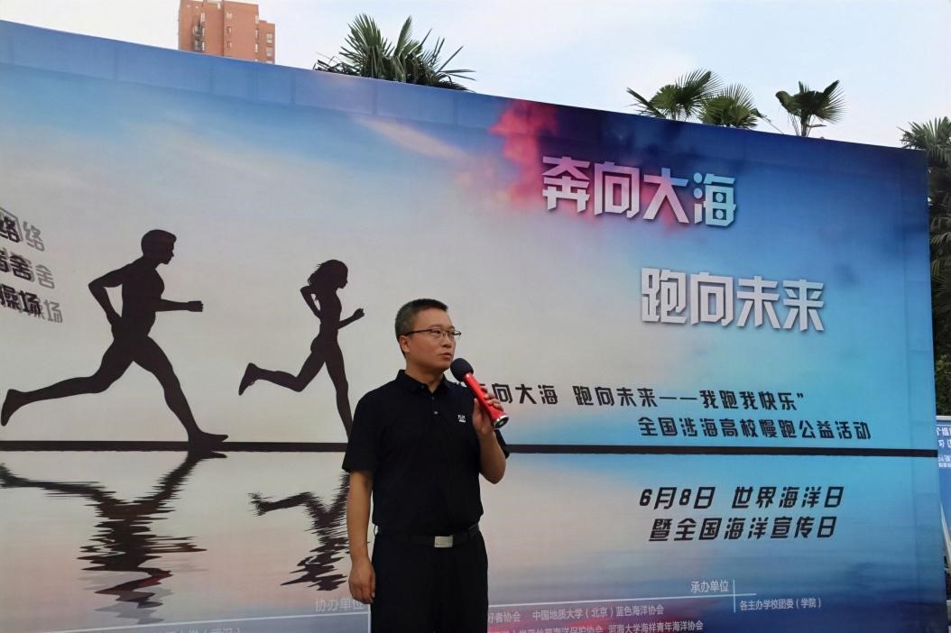 海洋学院副院长、2020年湖北省荆楚好老师、2020年珠峰高程测量队员陈刚老师出席启动仪式并致辞。他表示,2021年6月8日是第十三个世界海洋日暨全国海洋宣传日,今年海洋日的主题是“保护海洋生物多样性,人与自然和谐共生”,旨在呼吁全社会在习近平海洋强国思想和生态文明思想的指引下,引导公众和大学生树立海洋强国和生态文明的理念。希望广大同学们能够以慢跑活动为契机,继续关心海洋、热爱海洋、经略海洋,学习海洋知识,在求知的海洋里遨游,为祖国海洋强国建设舔砖加瓦。