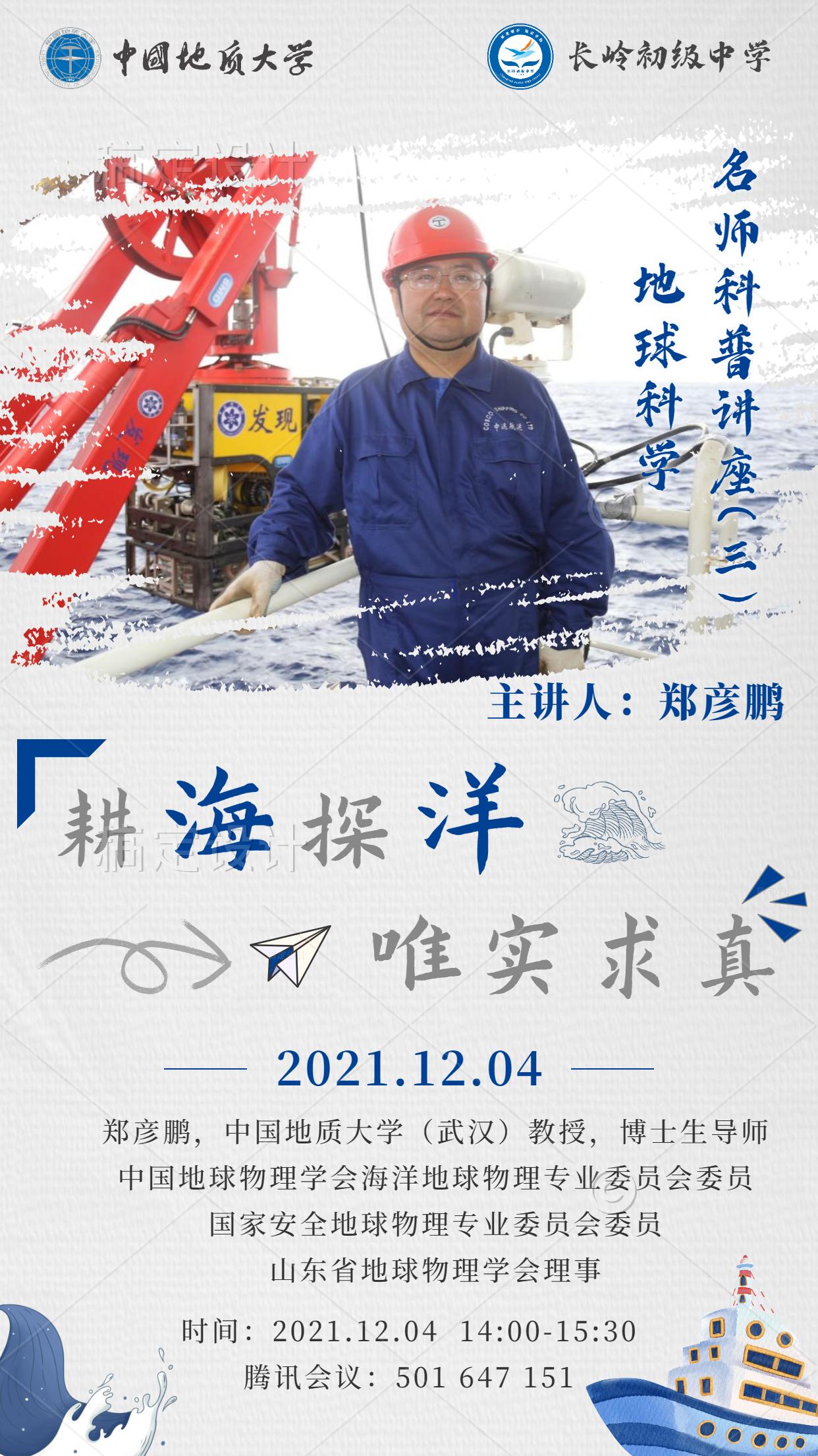 为接力“上天、入地”系列科普讲座开讲,12月4日下午,受中国地质大学(武汉)第23届研支团成员邀请,中国第34次南极考察向阳红01船航次首席科学家、我院郑彦鹏教授为湖北省巴东县水布垭镇长岭初级中学的同学们开展题为《耕海探洋、唯实求真》的精彩科普讲座,共同助力乡村教育振兴。
