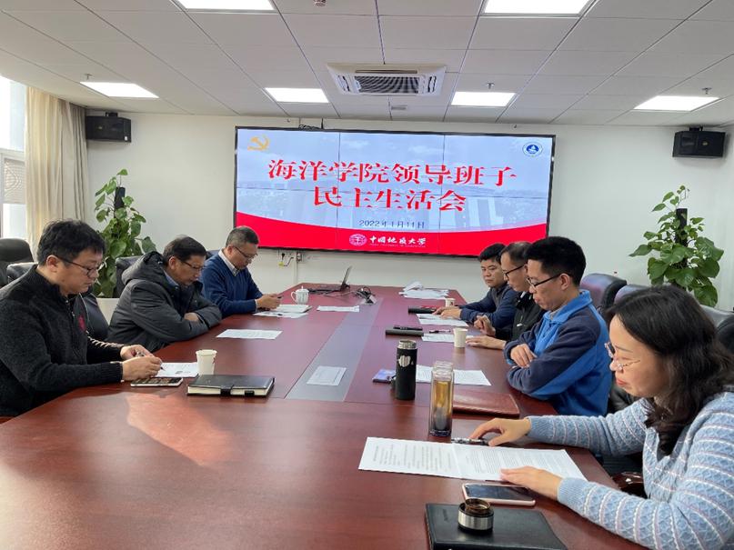 2022年1月11日下午,海洋学院领导班子民主生活会在综教楼A1804会议室召开。学校党委副书记成金华出席会议,学院领导班子成员参加会议。会议由学院党委书记成军主持。