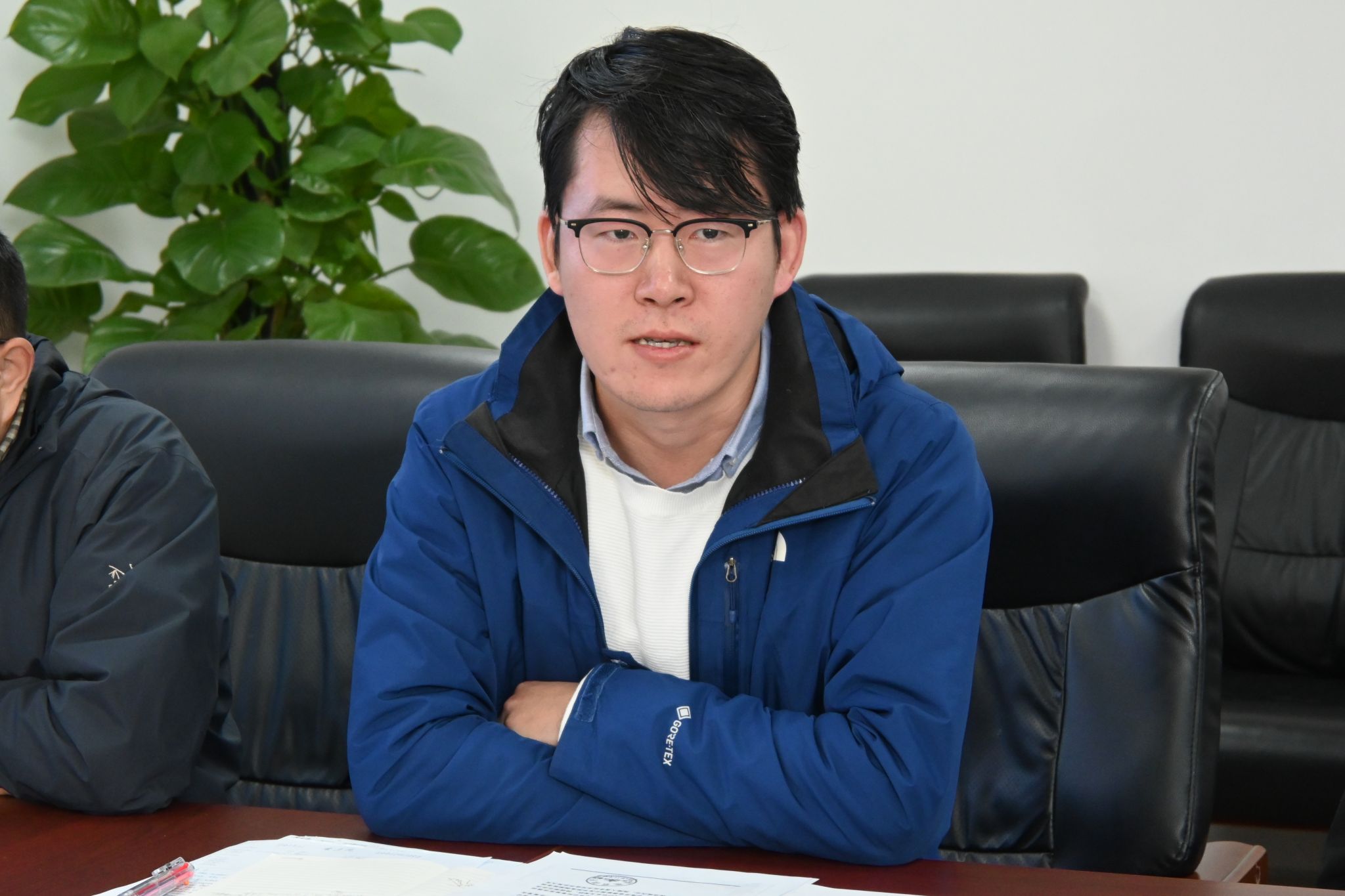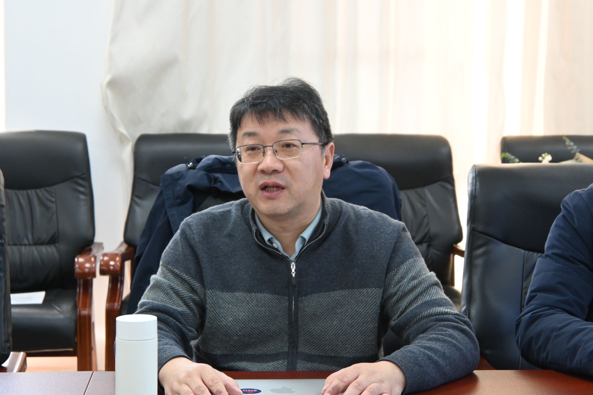 会议期间,严伊杰向副院长姜涛教授献花,表达了学院青年学子对姜涛教授的敬意。