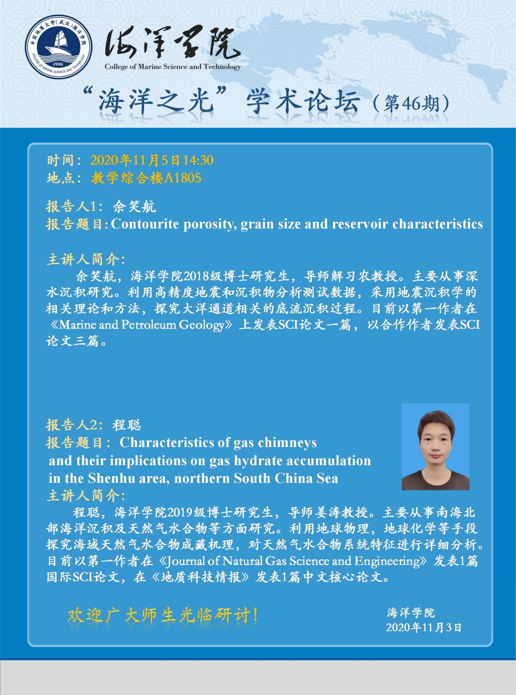“海洋之光”学术论坛(第46期)——余笑航 程聪