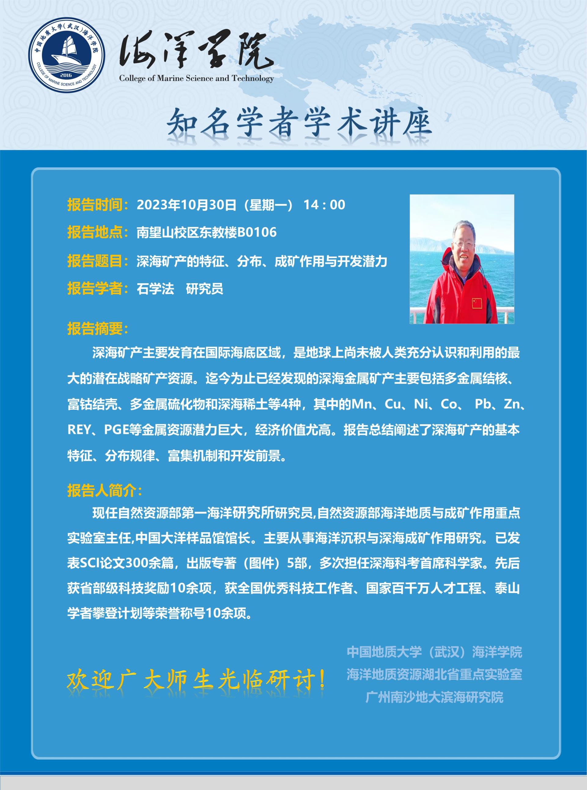 知名学者学术讲座——石学法 研究员
