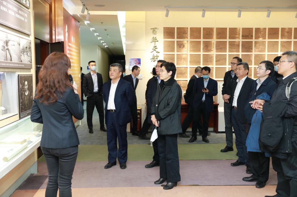 钟文炜董事长热烈欢迎黄晓玫书记一行来访,介绍了天航局百年发展历史、装备国产化、企业转型发展情况。对地大校友在天航局建设发展中的贡献给予高度评价,同时与学校在科技创新、产学研共建、学生实习实践和毕业生招聘等方面的合作展望。