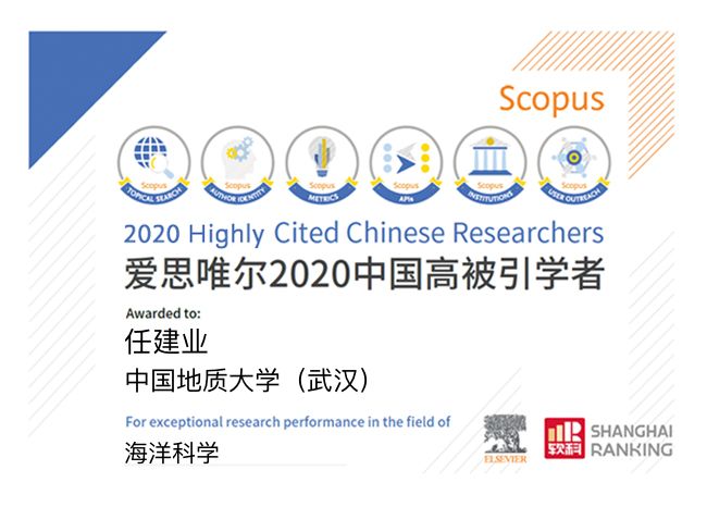 2021年4月22日,全球性信息分析公司爱思唯尔(Elsevier)正式发布了2020年中国高被引学者(Highly Cited Chinese Researchers)榜单,我院任建业教授入榜。本次榜单覆盖了教育部10个学科门类的84个一级学科,其中海洋科学学科共有26名学者入榜。2020爱思唯尔“中国高被引学者”榜单以全球权威的引文与索引数据库——Scopus作为中国学者科研成果数据来源,采用软科(上海软科教育信息咨询有限公司)设计的遴选方法,最终得到4023名各学科最具全球影响力的中国学者。
